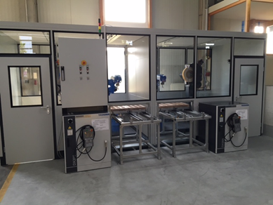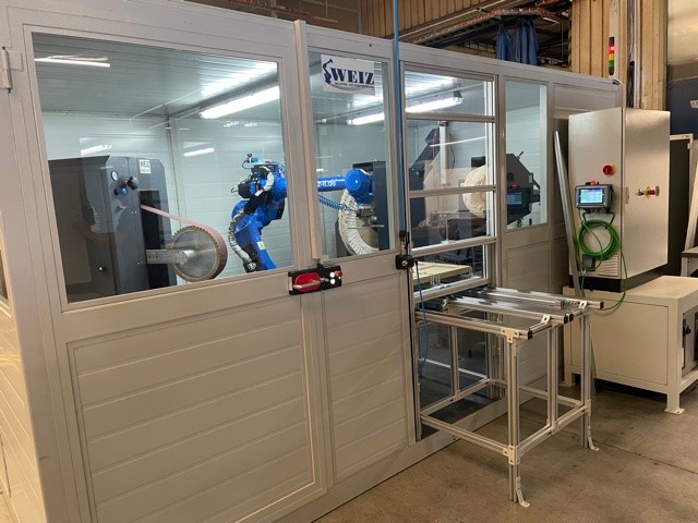 Vollautomatisierte Bearbeitungsanlage zum Schleifen, Polieren, Schleifen und Polieren von Teilen aus Stahl, Aluminium, Zinkdruckguss und Kunststoff.